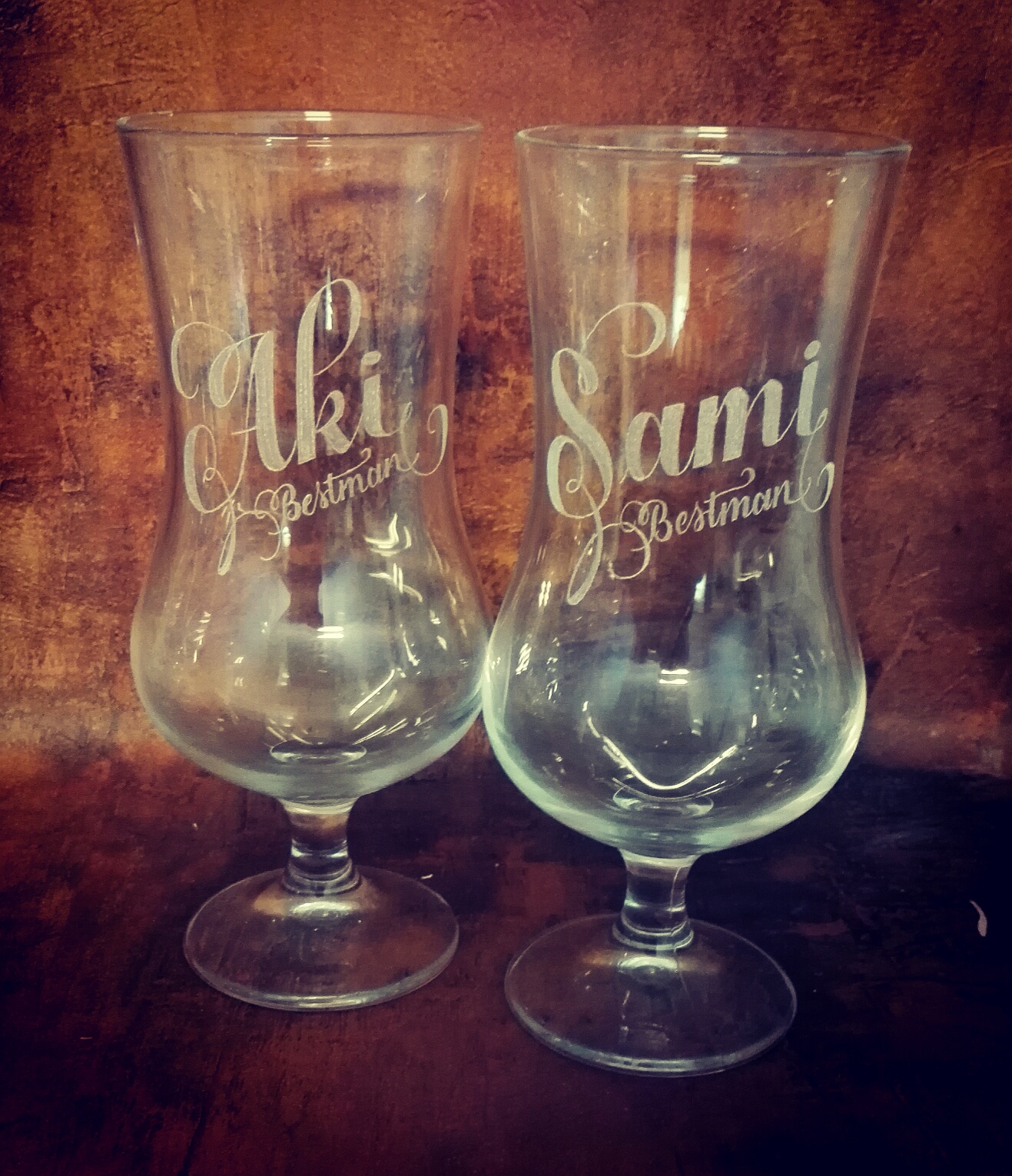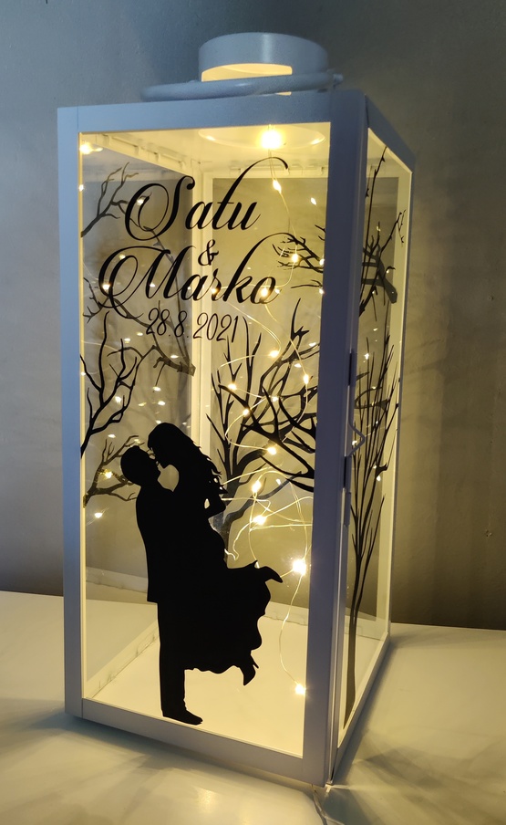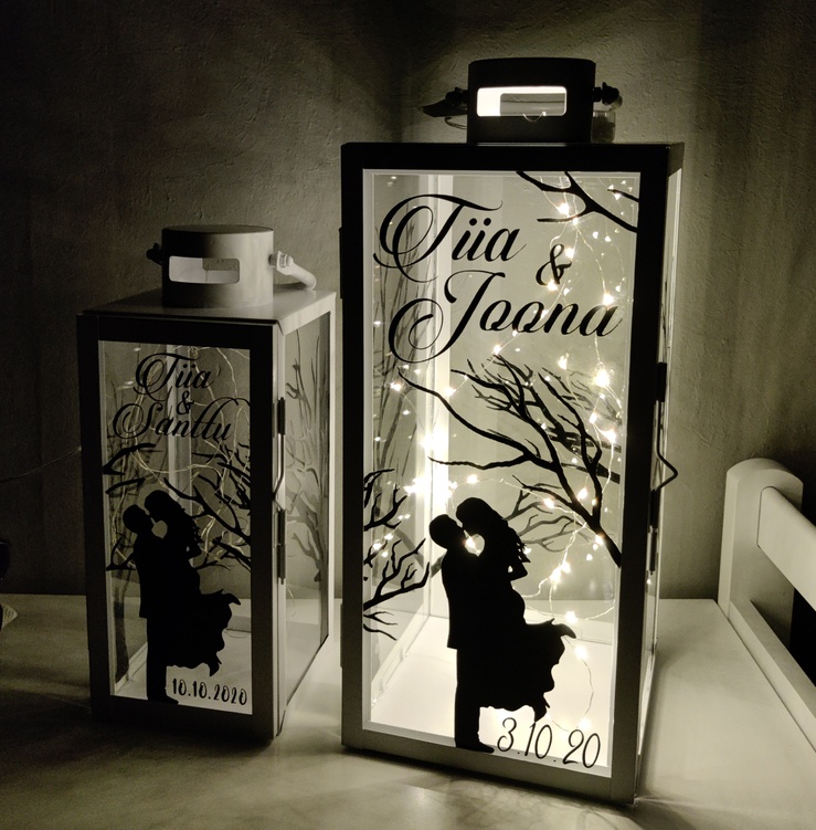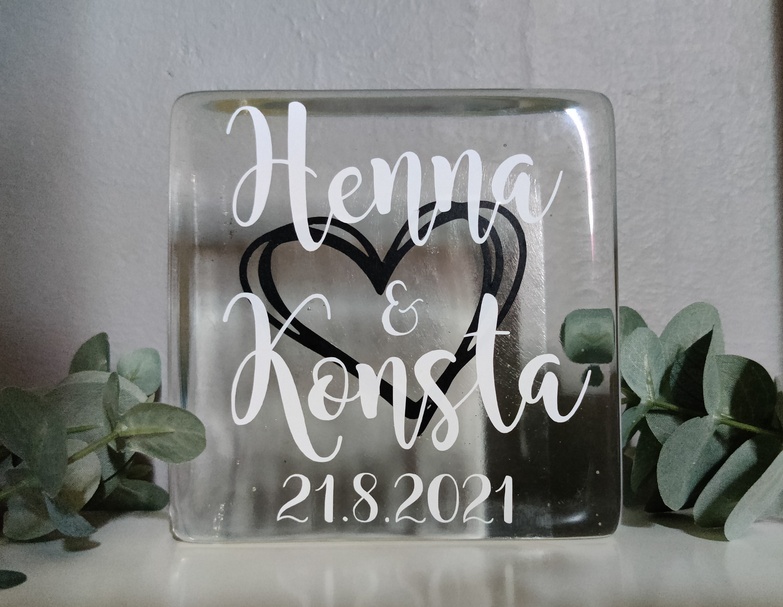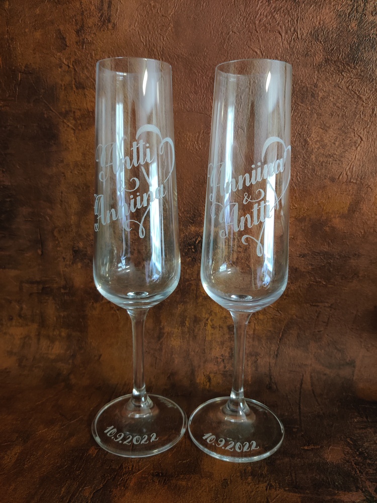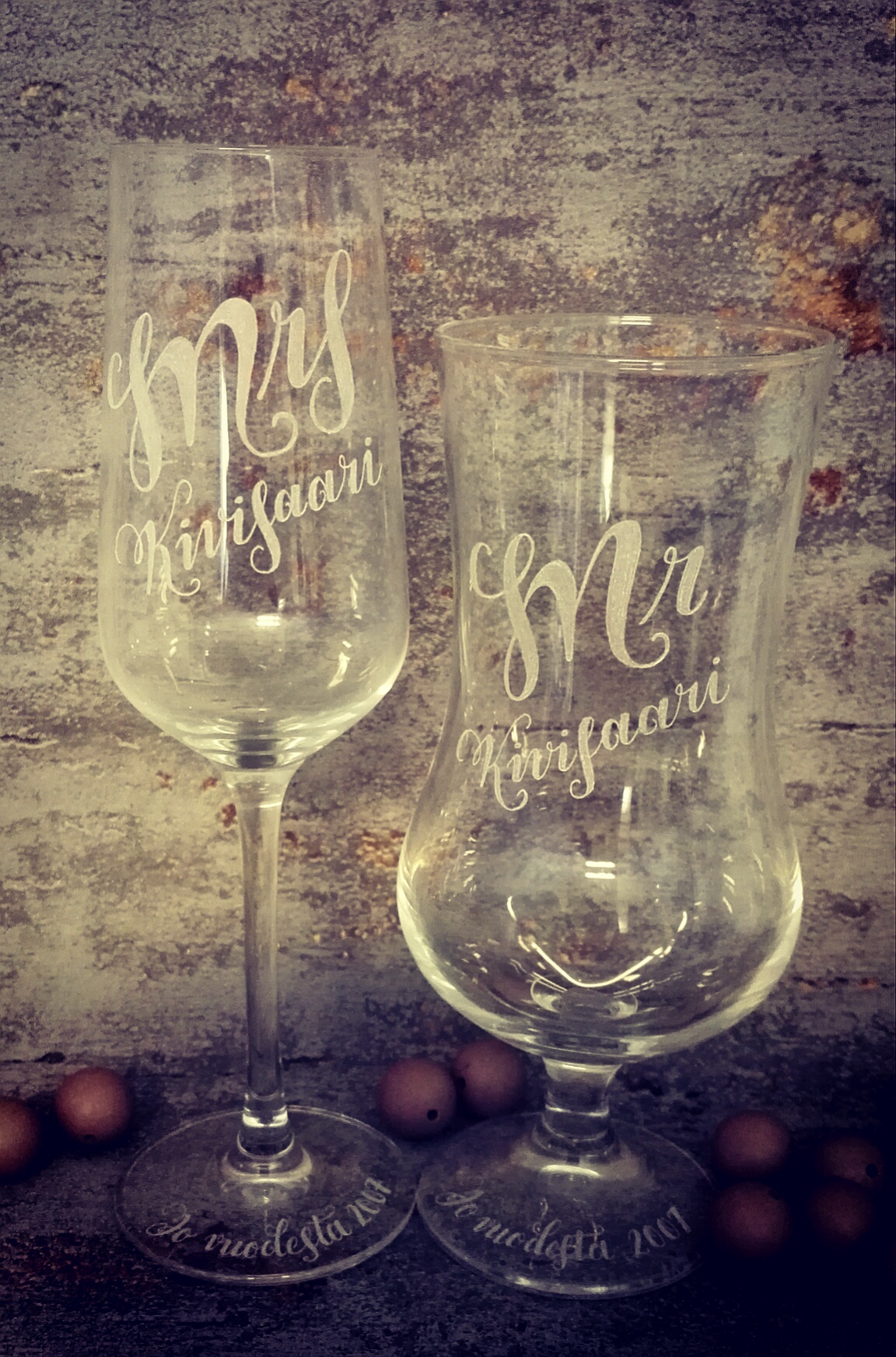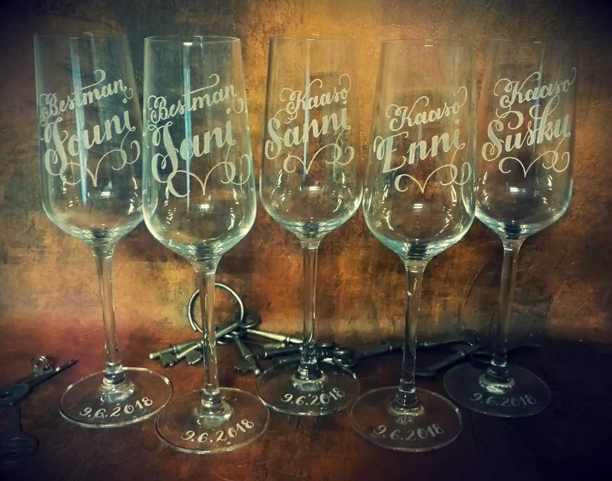 Häät Miten olisi… Käsinkaiverretut lasit alk. 20€ (Hääparille kuoharilasit, bestmaneille tuopit, kaasoille viinilasit…vaihtoehtoja on paljon) Lyhdyt omilla kuvilla/tekstillä alk. 28€ Lasikuutio nimillä 18€ Persoonallisia, uniikkeja lahjoja tilauksesta.
