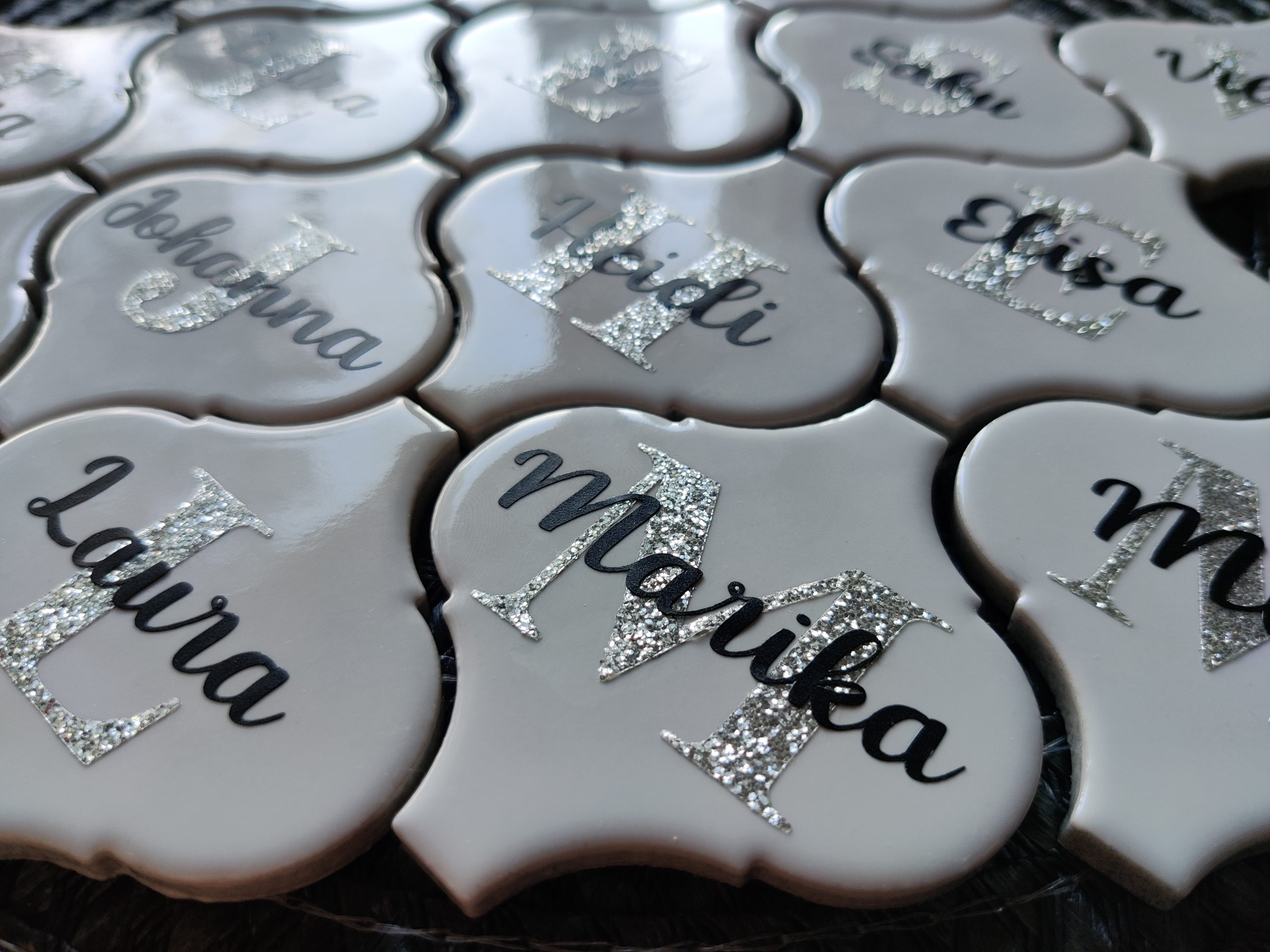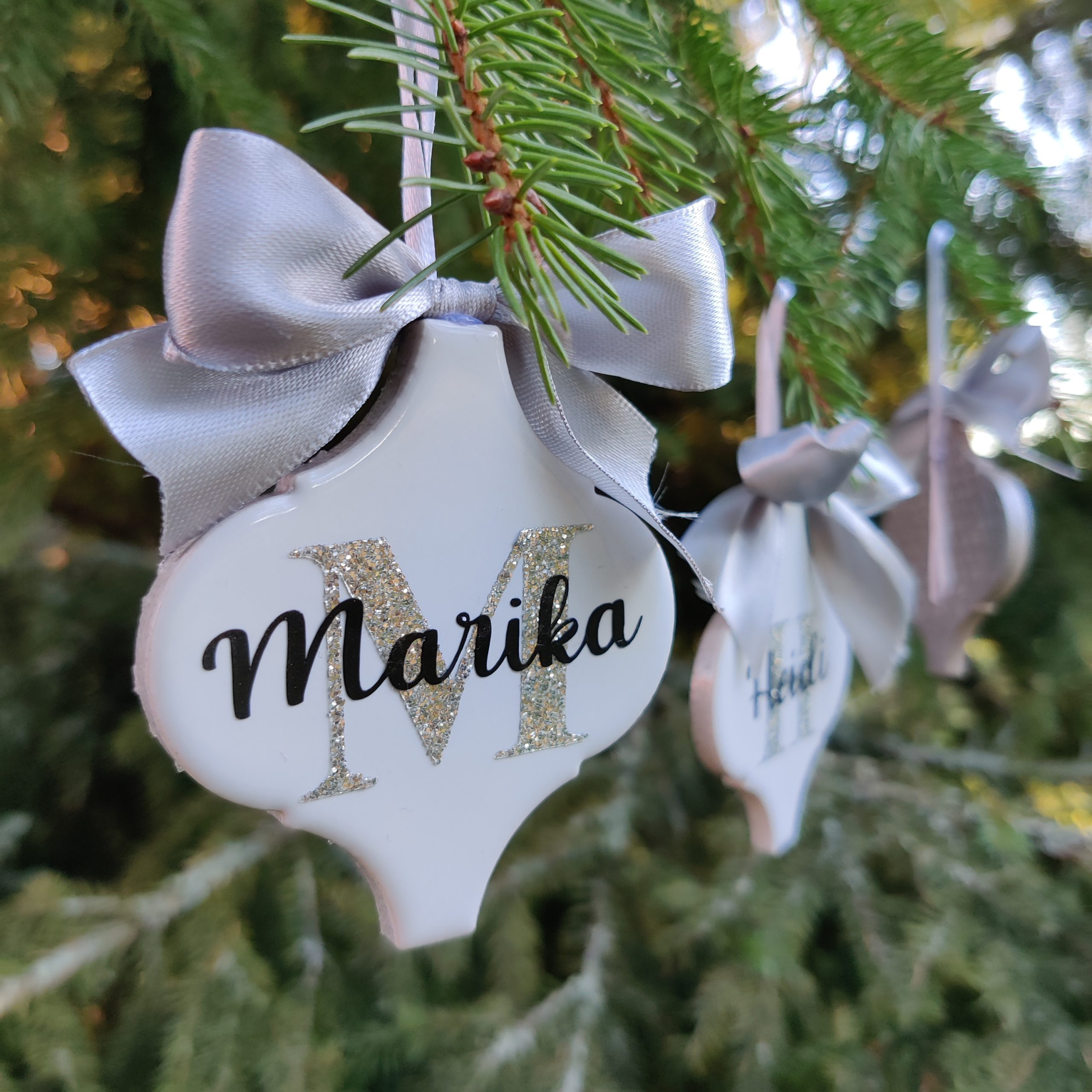 Ornamenttikoriste nimellä ja kirjaimella 7e