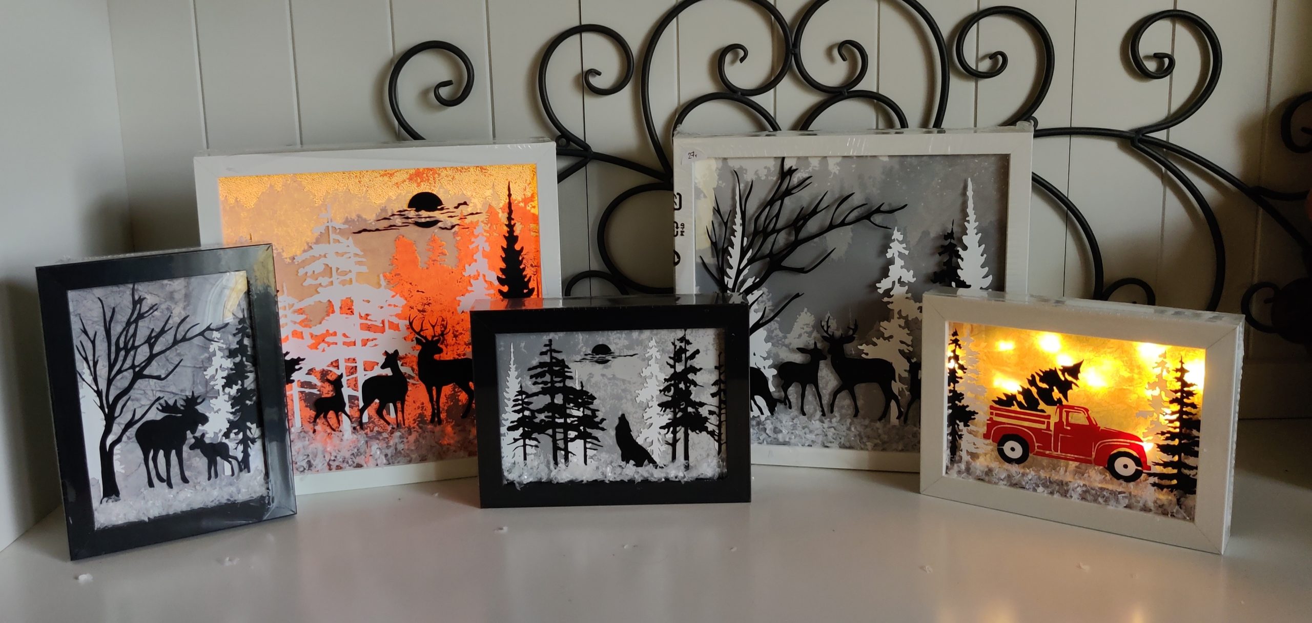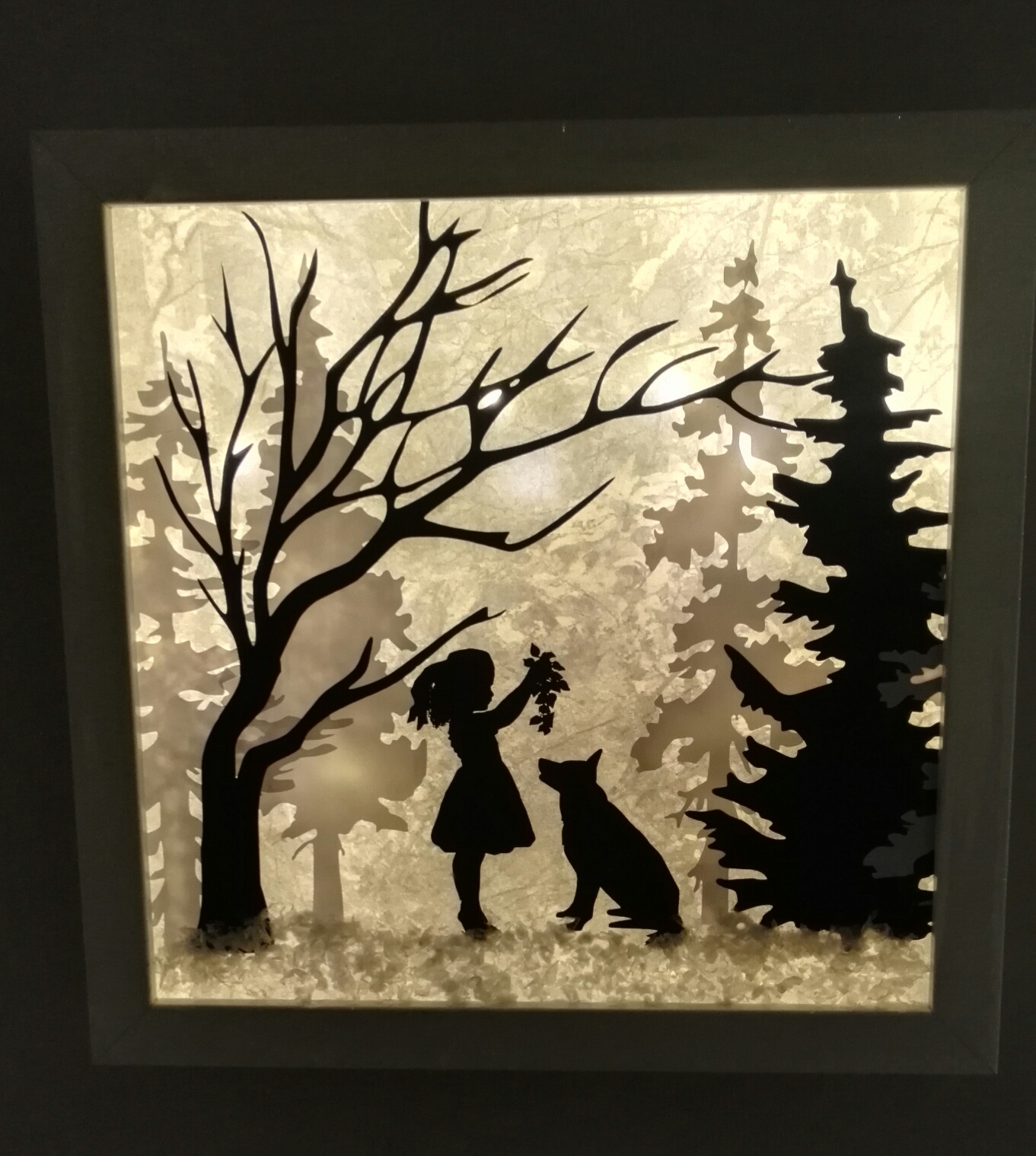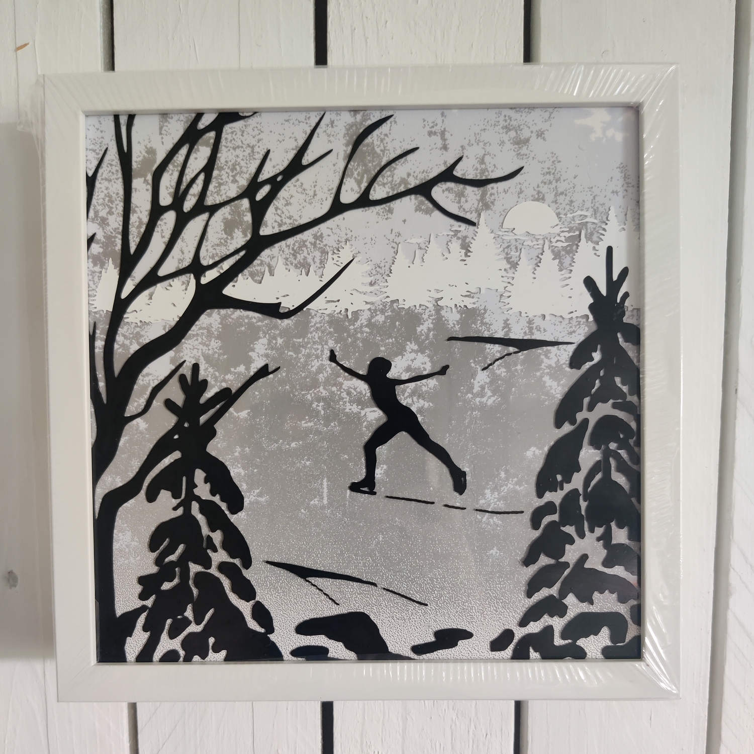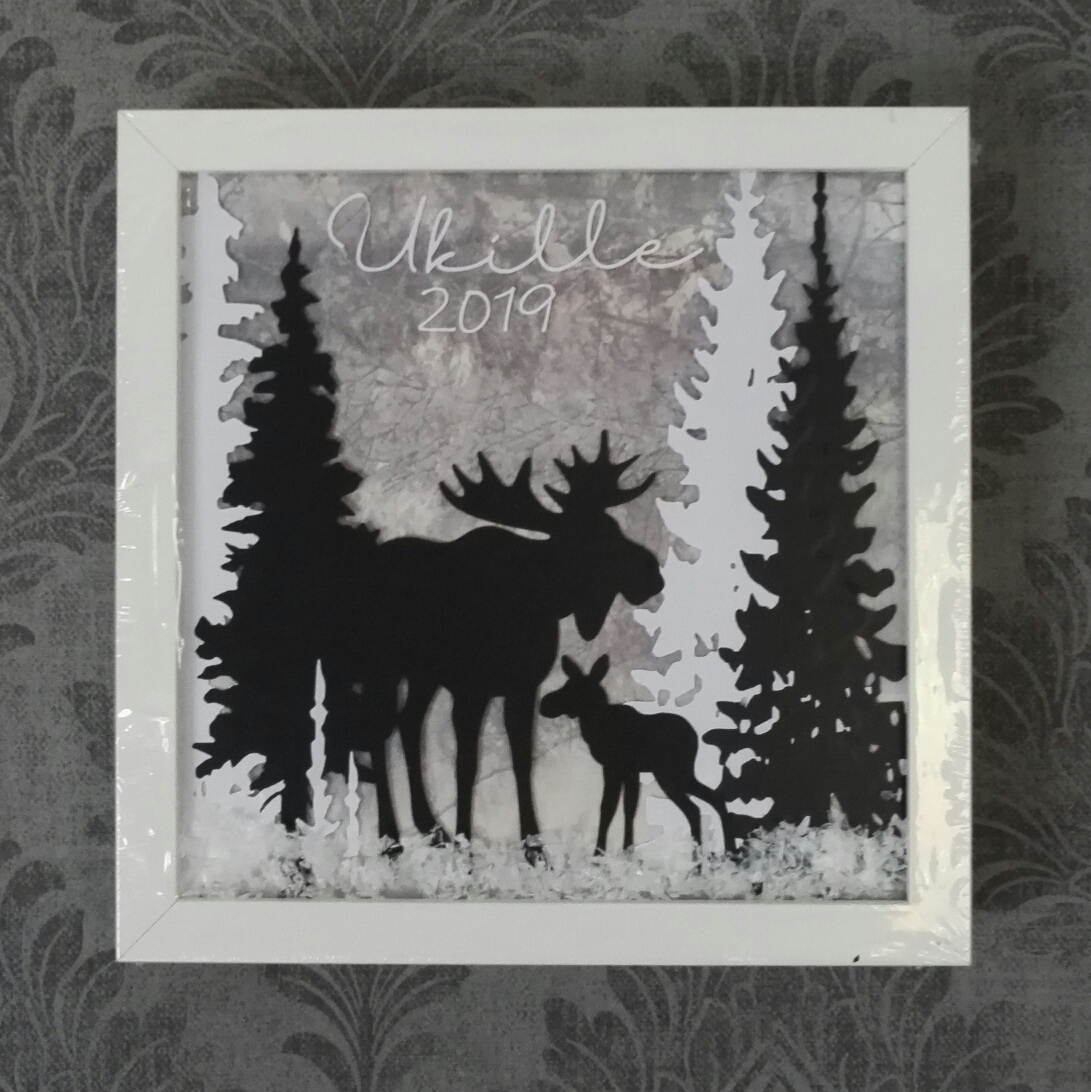 Kuva on pleksin/lasin pinnassa. Alareunaan voidaan laittaa myös ”lunta”. Kuvan alla on tapetti jonka läpi valo loistaa ja leviää kauniisti,