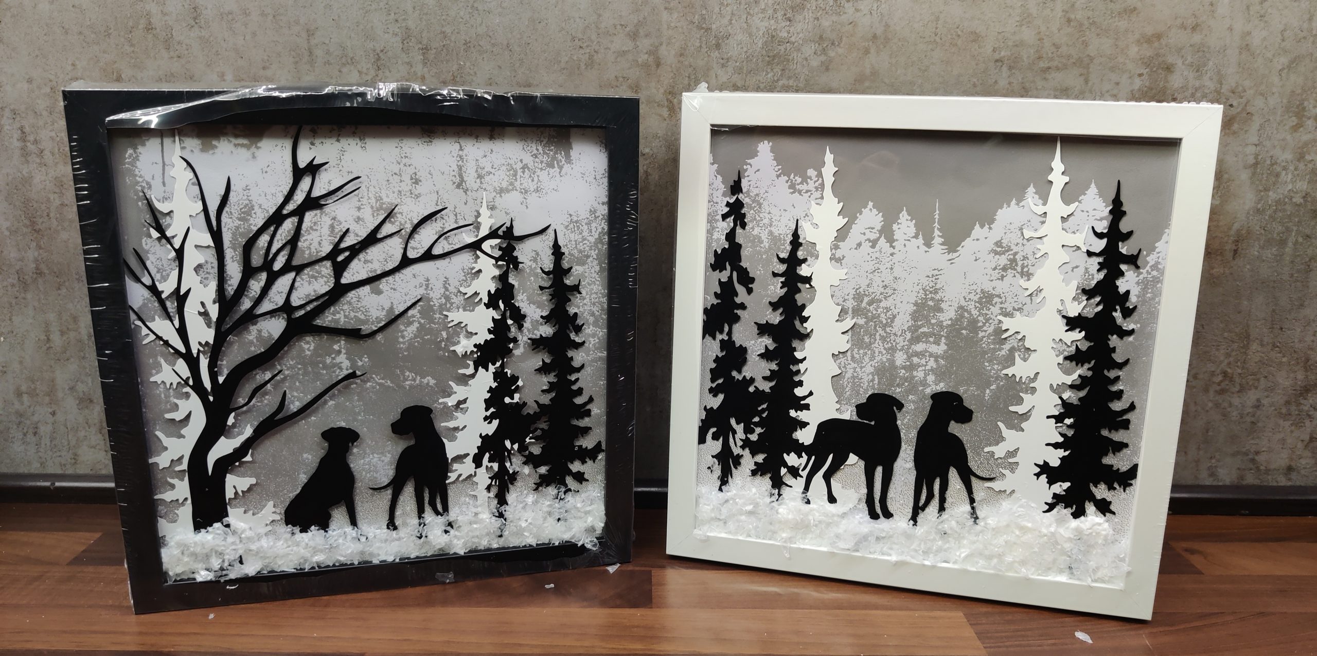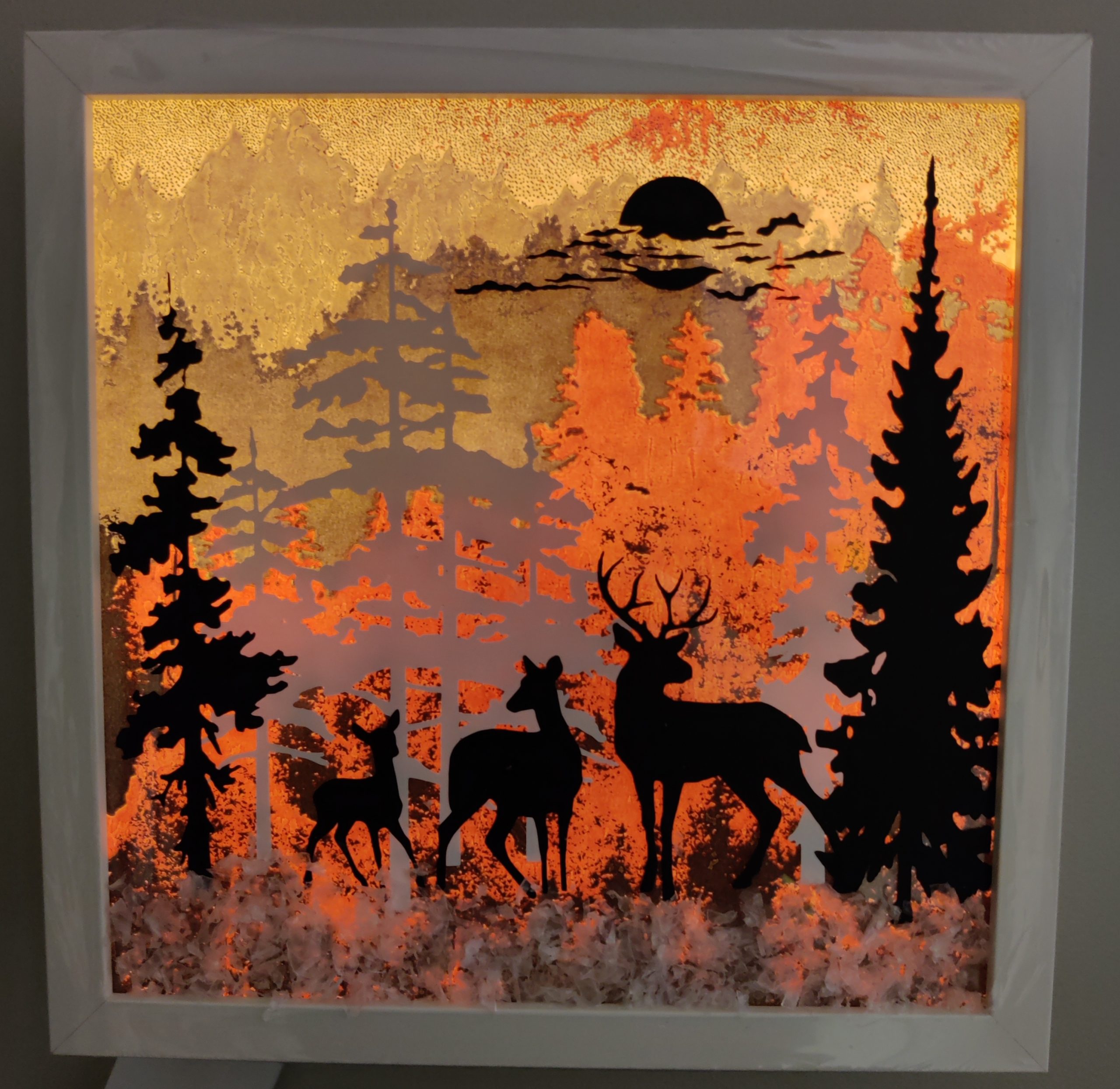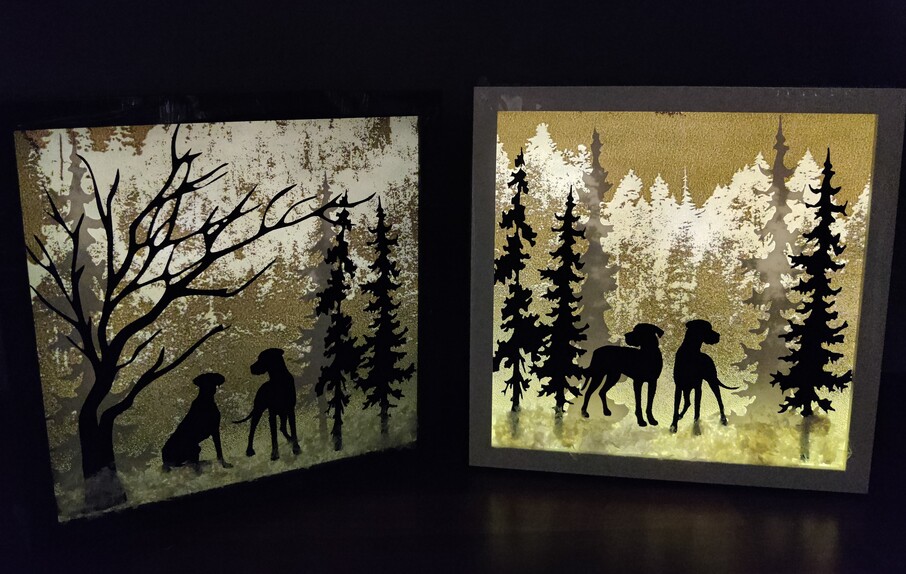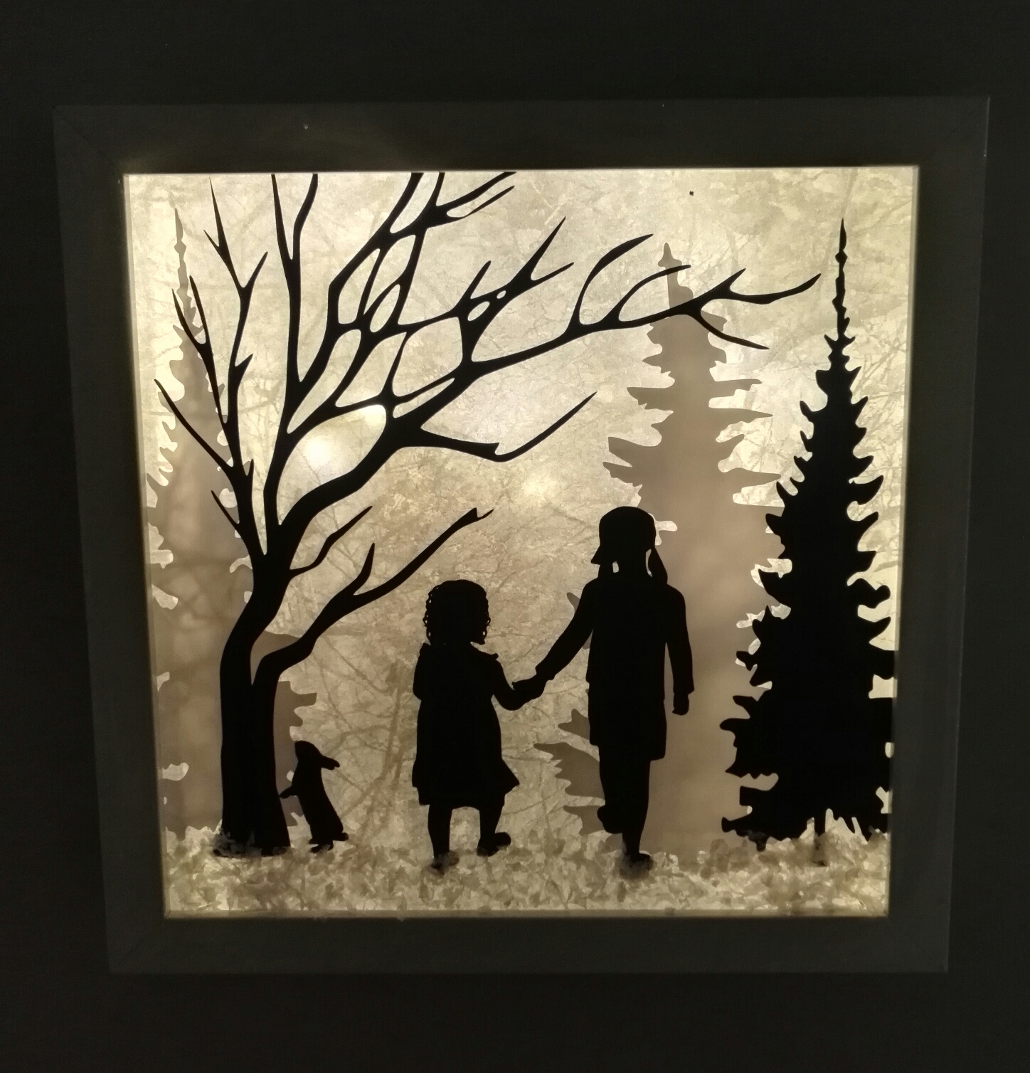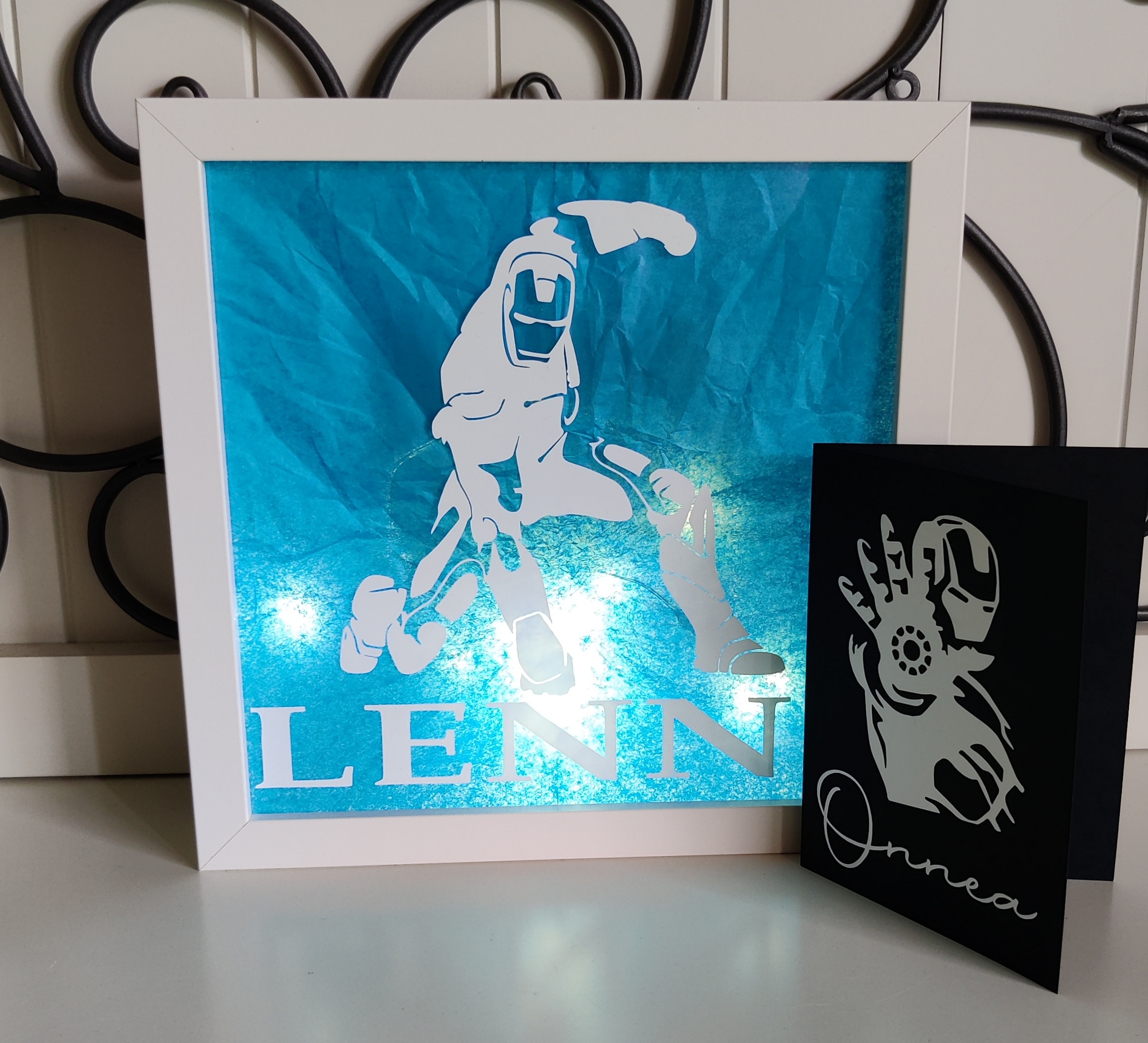 Kuva on pleksin/lasin pinnassa. Alareunaan voidaan laittaa myös ”lunta”. Kuvan alla on tapetti jonka läpi valo loistaa ja leviää kauniisti,