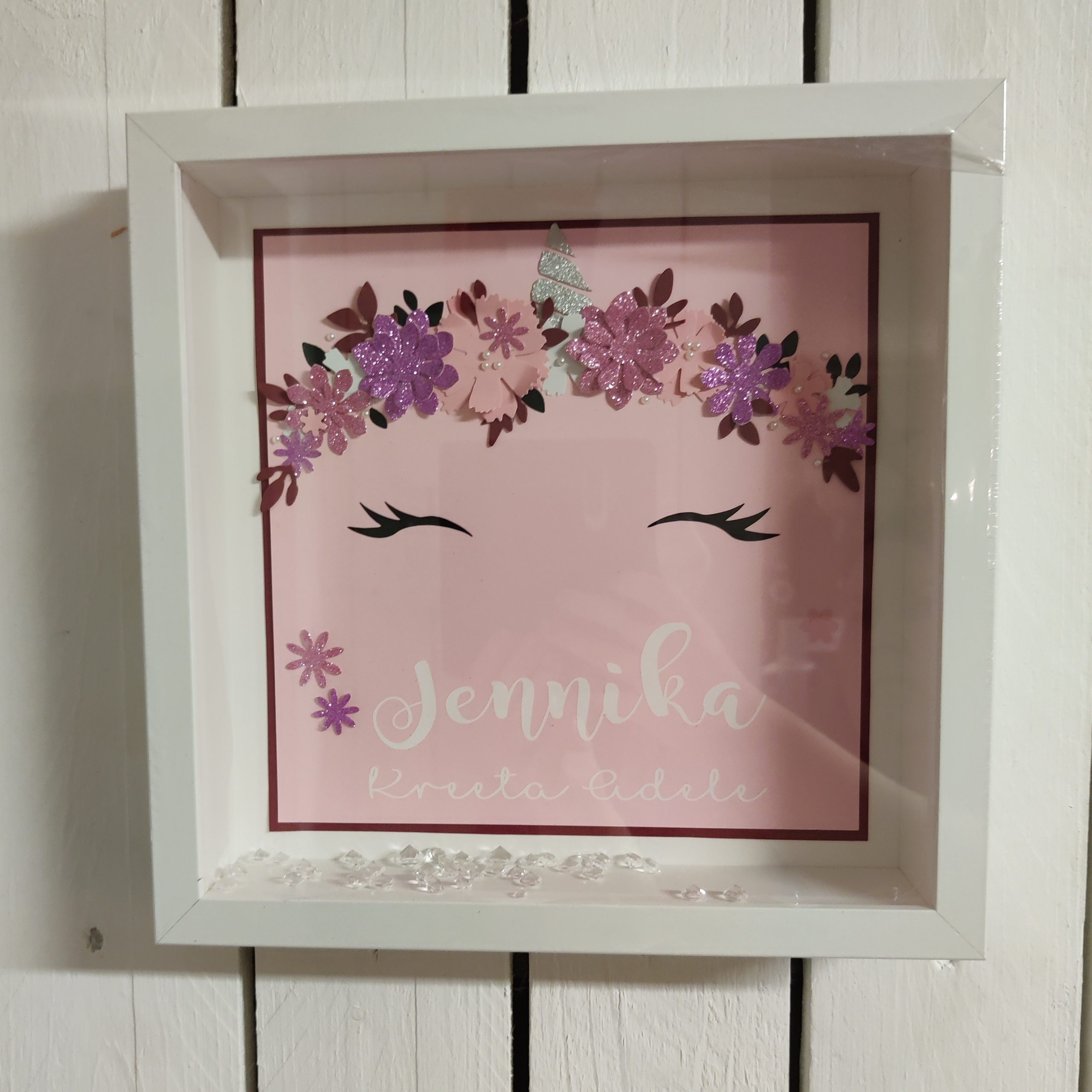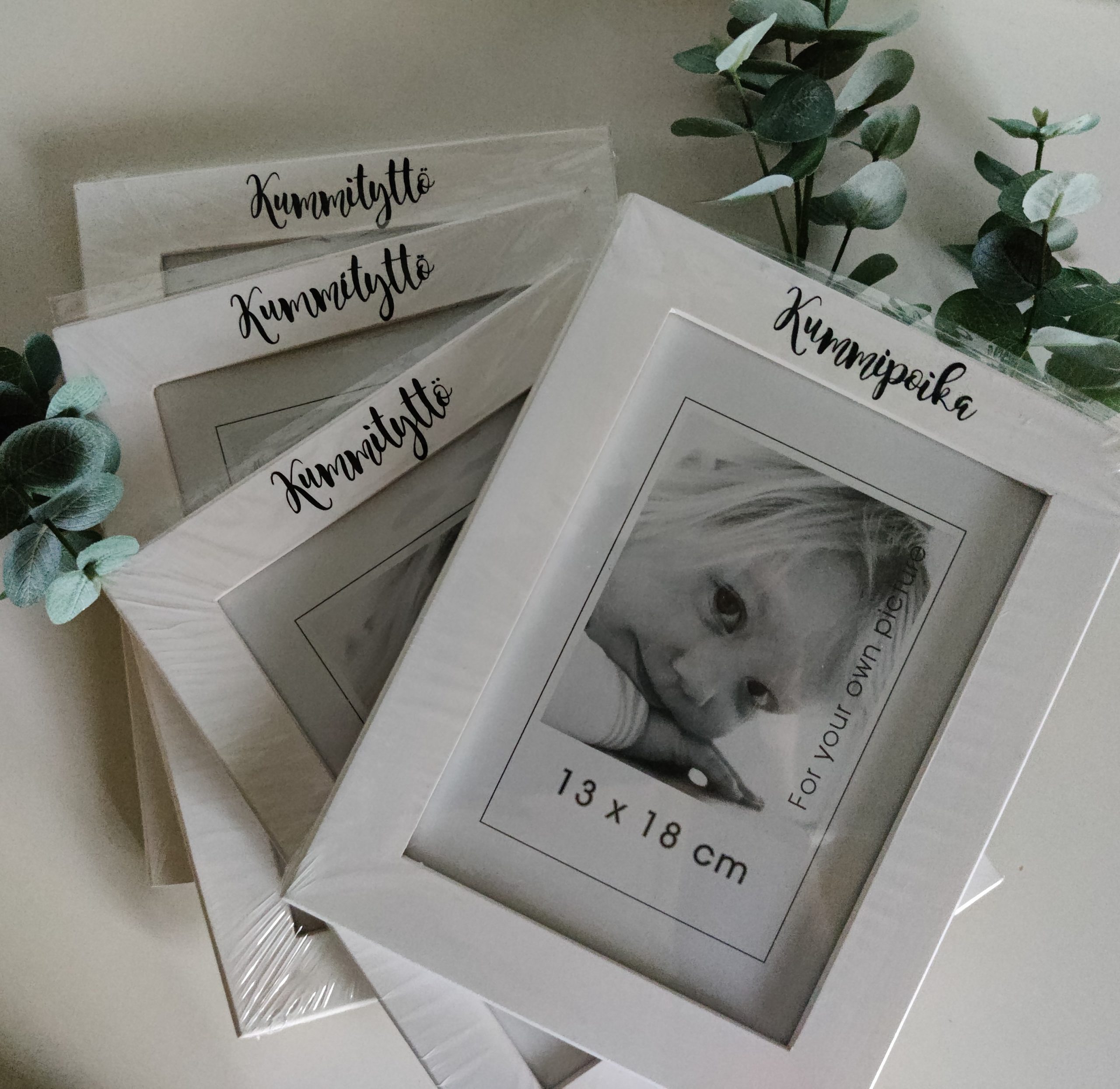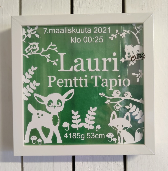 Kehys lapsen tiedoilla (tai esim.logolla)